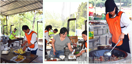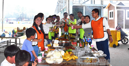 中午,大家集合聚餐,自給自足,眾多大廚閃亮登場。在美味佳肴中,大家互相交流情感。大家像老朋友一樣圍坐一起,放下了工作時的嚴(yán)肅與緊張,喝著啤酒、擼著烤串,談天說地。從分組賽的團(tuán)結(jié)協(xié)作、燒烤擼串時的分工互助,小伙伴們親身感受到了團(tuán)隊力量的巨大和共同完成目標(biāo)的興奮。